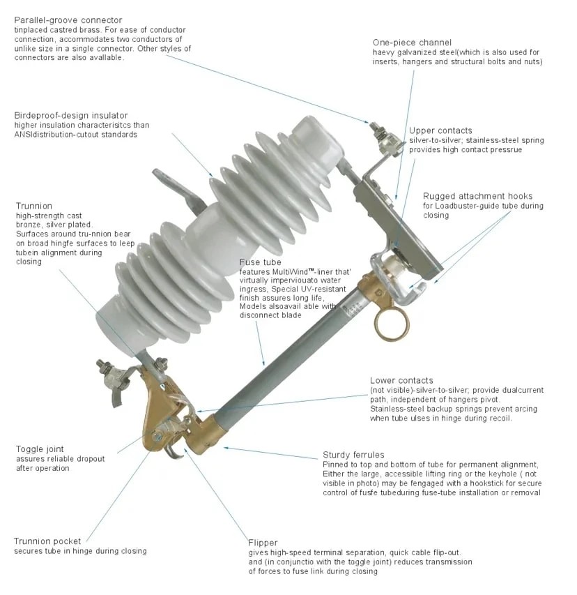 Guntingan Sekering Dropout Guntingan dropout memiliki fitur utama, yaitu dapat memberikan indikasi yang terlihat. Indikasi ini muncul ketika elemen sekering beroperasi.