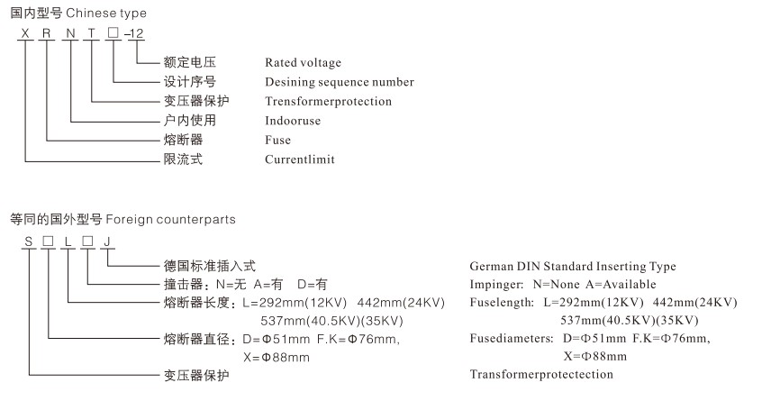 • Sekering Tegangan Tinggi Sekering Pembatas Arus XRNT PTSekering Tegangan Tinggi Sekering Pembatas Arus XRNT PT